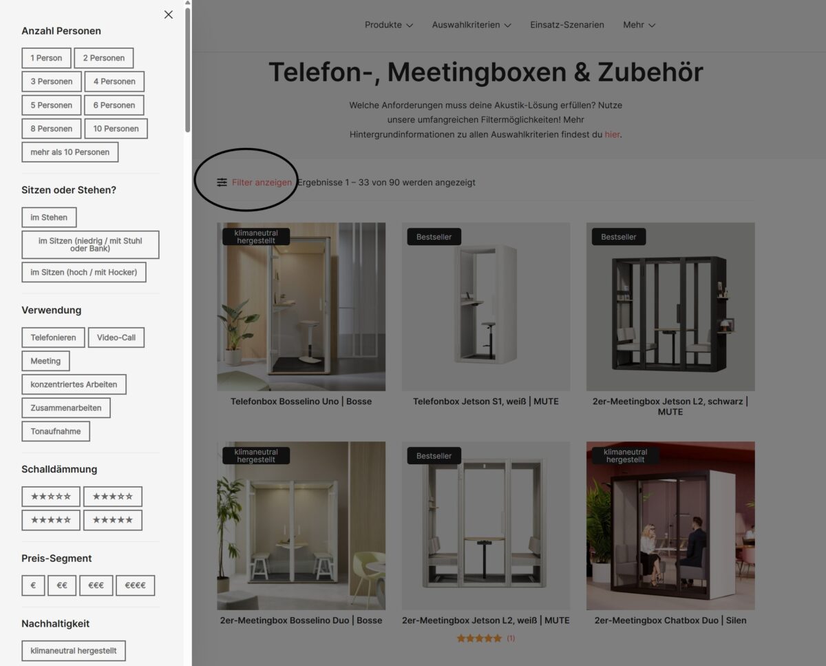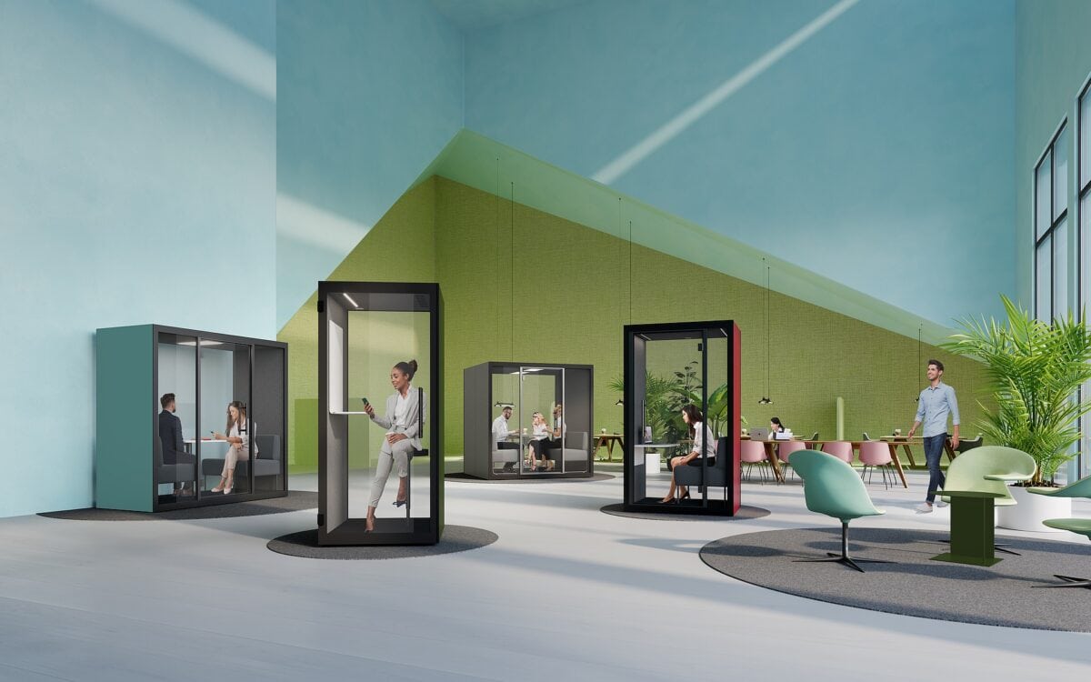 Las cabinas telefónicas y de reuniones o los sistemas "sala en sala" son mucho más difíciles de integrar en la planificación del espacio de oficinas que los escritorios y similares. Esto se debe en parte al gran número de fabricantes, a la falta de dimensiones normalizadas y, por último, pero no por ello menos importante, a las diferencias en la mano de obra y el aislamiento acústico, que a veces son difíciles de evaluar para las personas ajenas a la empresa.
