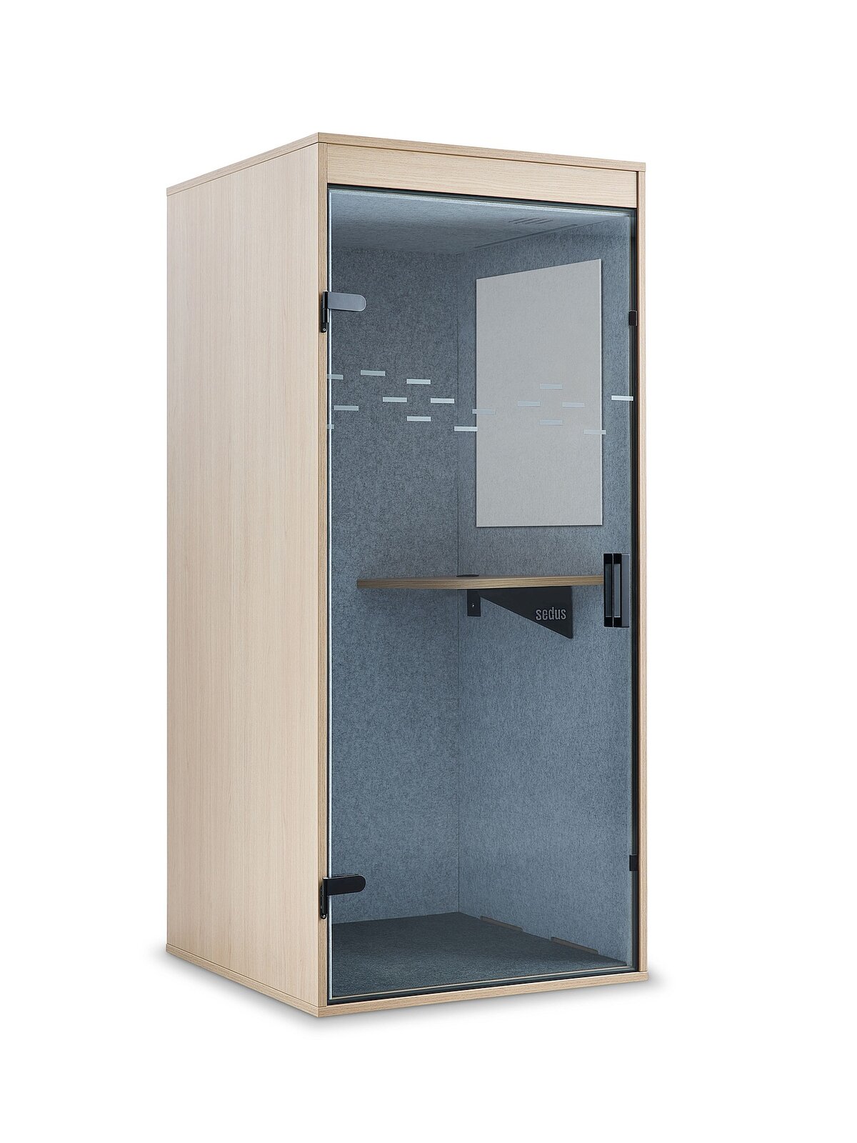 - Aislamiento acústico: Los valores de aislamiento acústico de la cabina telefónica “Cube Air Pro” se sitúan en el rango de la clase de aislamiento acústico C (ISO 23351-1), que suele ser suficiente para oficinas normales de planta abierta (véase también Aislamiento acústico). Los siguientes aspectos favorecen el aislamiento acústico de la cabina telefónica: