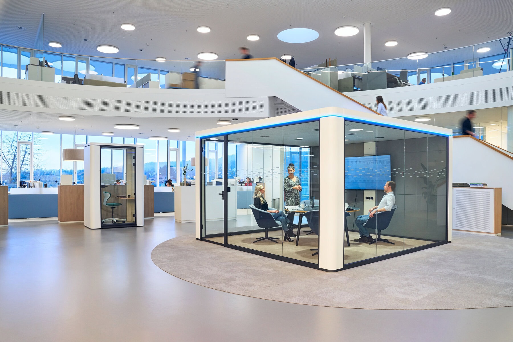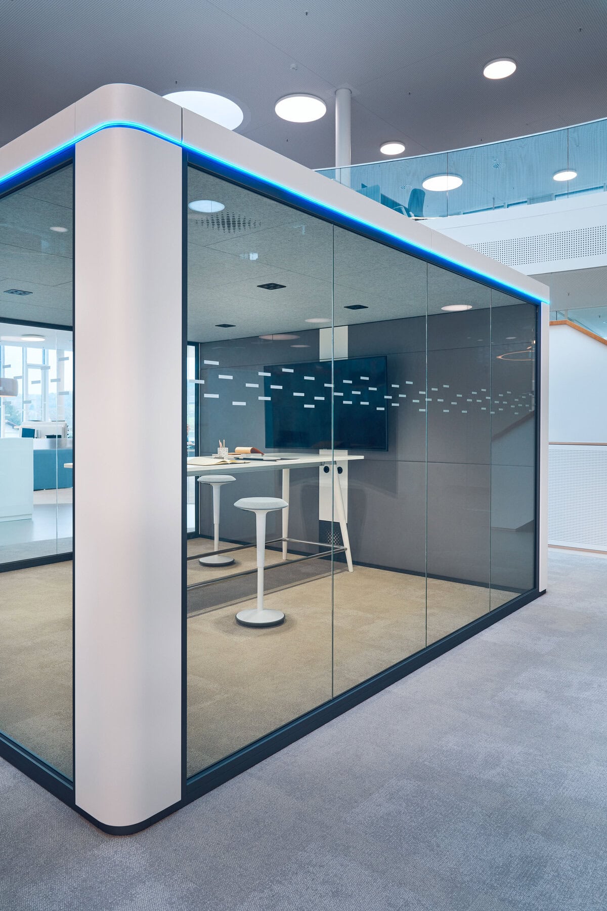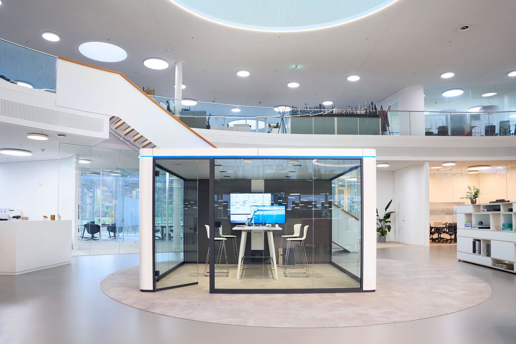 - Cube M : Boîte de réunion pouvant accueillir jusqu'à quatre personnes, adaptée aux petites réunions ou aux sessions de brainstorming