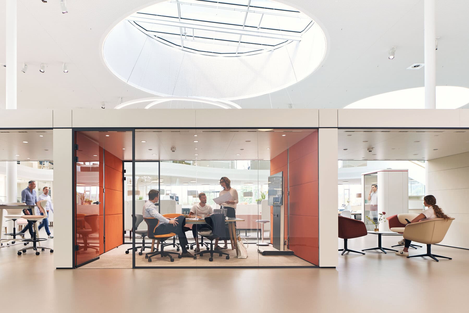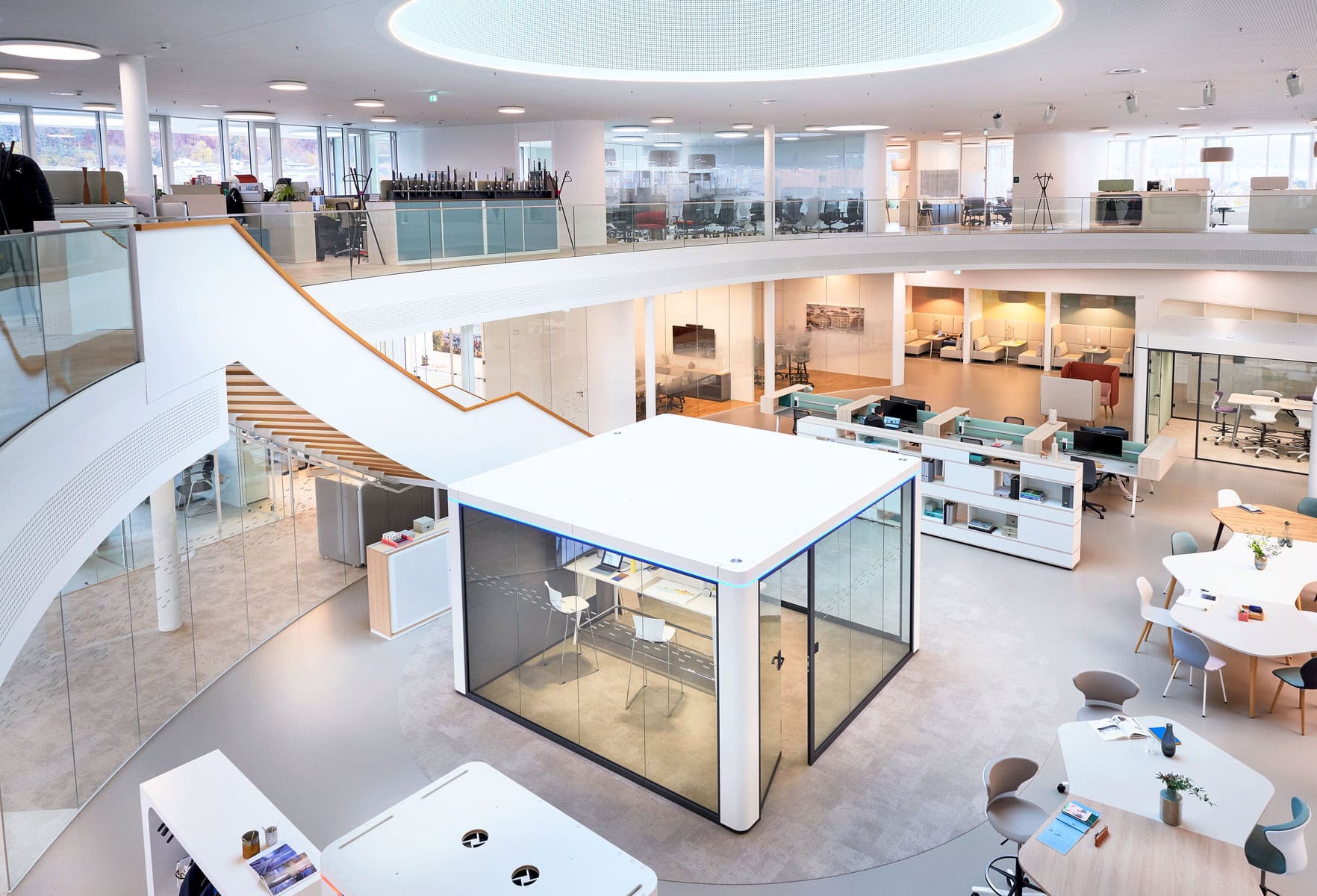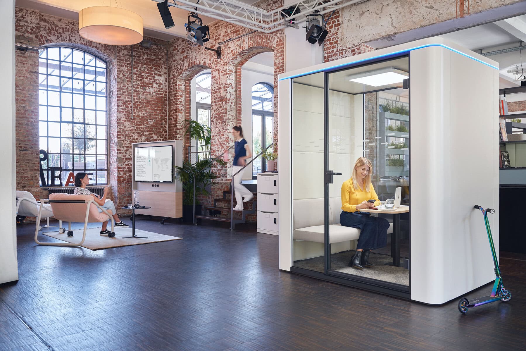 - Cube M : Boîte de réunion pouvant accueillir jusqu'à quatre personnes, adaptée aux petites réunions ou aux sessions de brainstorming
