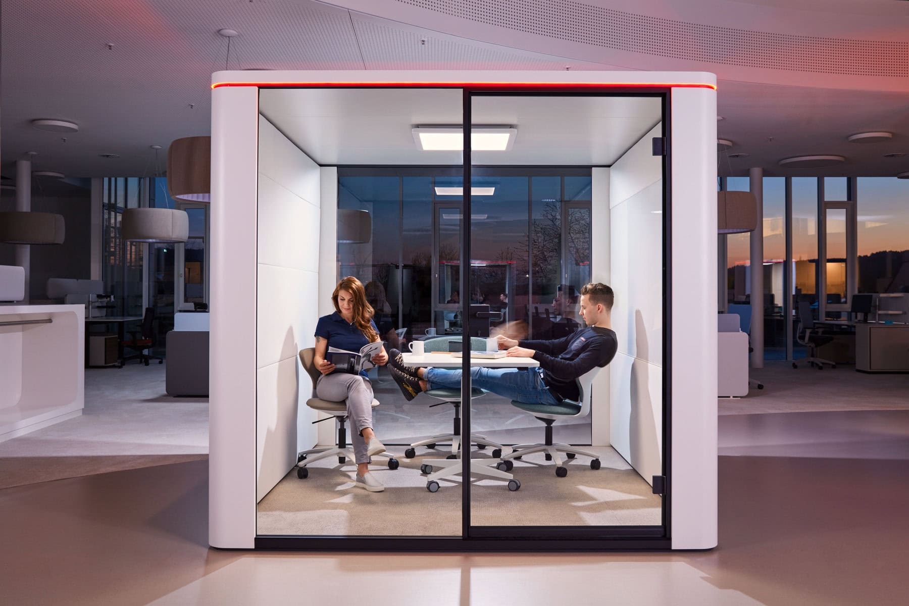 Sedus est l'un des fabricants de mobilier de bureau les plus renommés et les plus prospères d'Allemagne. Avec se:cube, Sedus a lancé sur le marché une série innovante de boîtiers de téléphone et de réunion qui a séduit de nombreux clients. Le design des cubes de Sedus se caractérise par une forme sobre et rectiligne, adoucie par des angles légèrement arrondis. Les modèles se:cube s'intègrent ainsi parfaitement dans les environnements de bureau les plus divers. Une caractéristique particulière de la série est le bandeau de LED disponible en option. Elle sert de signal visuel d'occupation et s'allume dès que le box est utilisé.