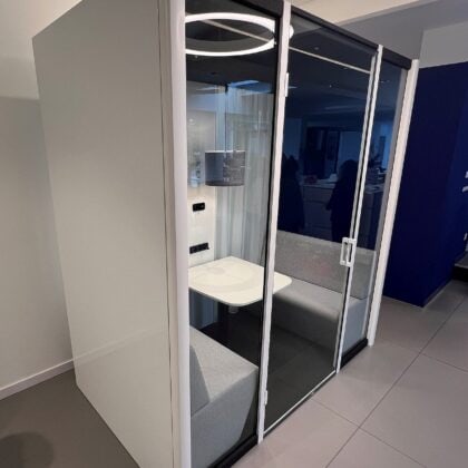 Bosse gehört schon seit den 1990ern zu den Pionieren im Bereich der Raum-in-Raum-Systeme und hat daher mittlerweile jahrzehntelange Erfahrung bei der Strukturierung von Großraumbüros. Der Schwerpunkt der Produktlinie “Bosse Human Space” liegt zwar ganz klar auf Raum-in-Raum-Systemen (also im Raum ohne eigenen Boden montierte Lösungen), mit der kleinen Telefonbox “Bosselino” hat Bosse jedoch einen absoluten Bestseller im im Programm.