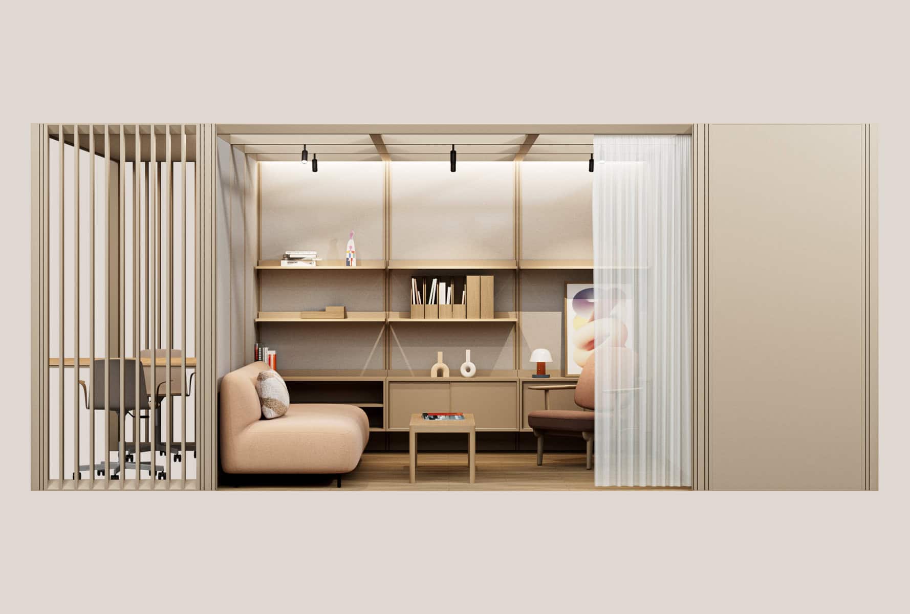 “MUTE Modular” ist ein anpassbares Raum-in-Raum-System mit nahezu unendlichen Kombinationsmöglichkeiten. Elegant, wohnlich, flexibel einsetzbar und immer wieder auf neue Anforderungen anpassbar.
