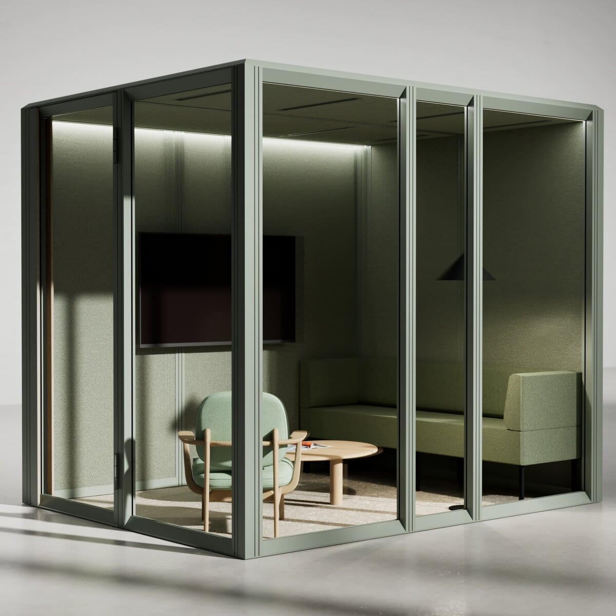 Vollständig auf kleinere Raum-in-Raum-Lösungen konzentriert sich dagegen der Katalog “MUTE Modular Pods”: